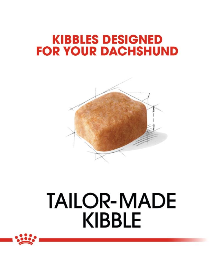 The Dachshund is a friendly, intelligent and loyal breed that is widely renowned as the ideal family dog. Because each breed has different needs, it’s important to select a food product that contains nutrients to support optimal health. Suitable for Dachshunds over 10 months old, ROYAL CANIN® Dachshund Adult is specially formulated with all the nutritional needs of your adult dog in mind to help maintain its good health and well-being. ROYAL CANIN® Dachshund Adult contributes to supporting the Dachshund’s bones and joints, thanks to an adapted calcium and phosphorus content. This exclusive formula also helps your dog maintain good muscle tone and an ideal weight. ROYAL CANIN® Dachshund Adult also helps to reduce the smell and volume of your dog’s faecal matter. The unique kibble in ROYAL CANIN® Dachshund Adult is tailor-made to help reduce tartar formation, thanks to the inclusion of calcium chelators. To cater to each dog’s individual preferences, ROYAL CANIN® Dachshund Adult is also available as wet food in a soft and tasty loaf. If you’re considering mixed feeding, simply follow our feeding guidelines to ensure your dog gets an accurate amount of both wet and dry food for optimal benefit.