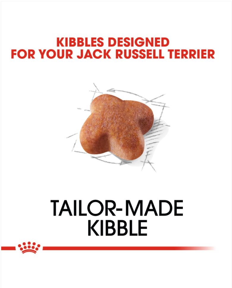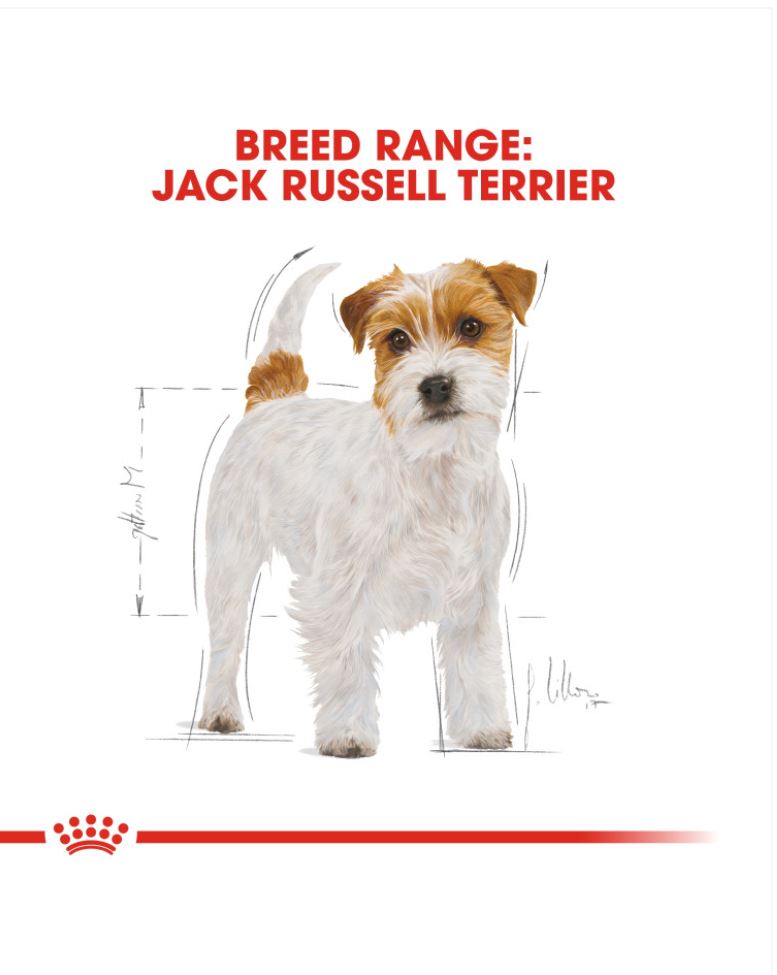 Suitable for Jack Russell Terriers aged 10 months old and over, ROYAL CANIN® Jack Russell Terrier Adult is specially formulated with all the nutritional needs of your adult dog in mind. ROYAL CANIN® Jack Russell Terrier Adult helps to support a healthy skin barrier function with a specific complex of nutrients. It also contains the omega 3 fatty acids EPA & DHA as well as borage oil, to help nourish your dog’s skin and healthy coat. The Jack Russell Terrier is known for its lively temperament, which is why this formula also contributes to maintaining muscle mass and supporting physical activity. This is thanks to an adapted protein content – enriched with a complex of antioxidants to help maintain vitality. ROYAL CANIN® Jack Russell Terrier Adult’s formula also helps to support your dog’s dental hygiene by helping to slow down tartar formation thanks to the inclusion of calcium chelators. What’s more, the kibble’s shape, size, and texture are each adapted to the specific palatability preferences of the Jack Russell Terrier breed.