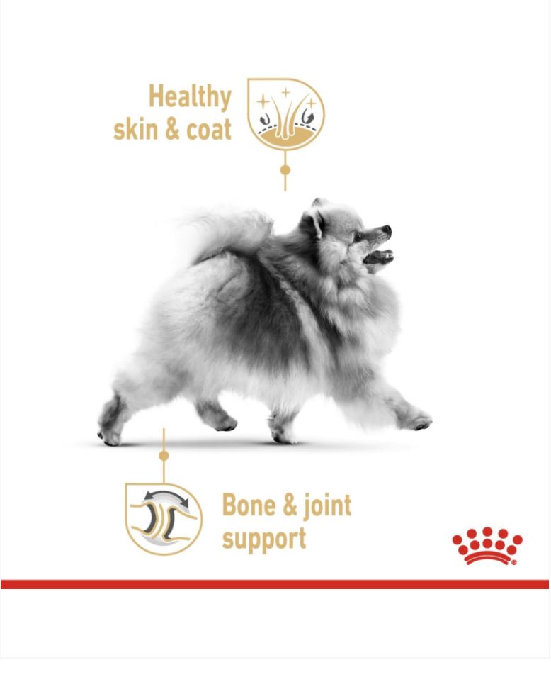‘Contributes to supporting the Pomeranian’s healthy bones and joints with an adapted mineral content. Enriched with EPA & DHA.’