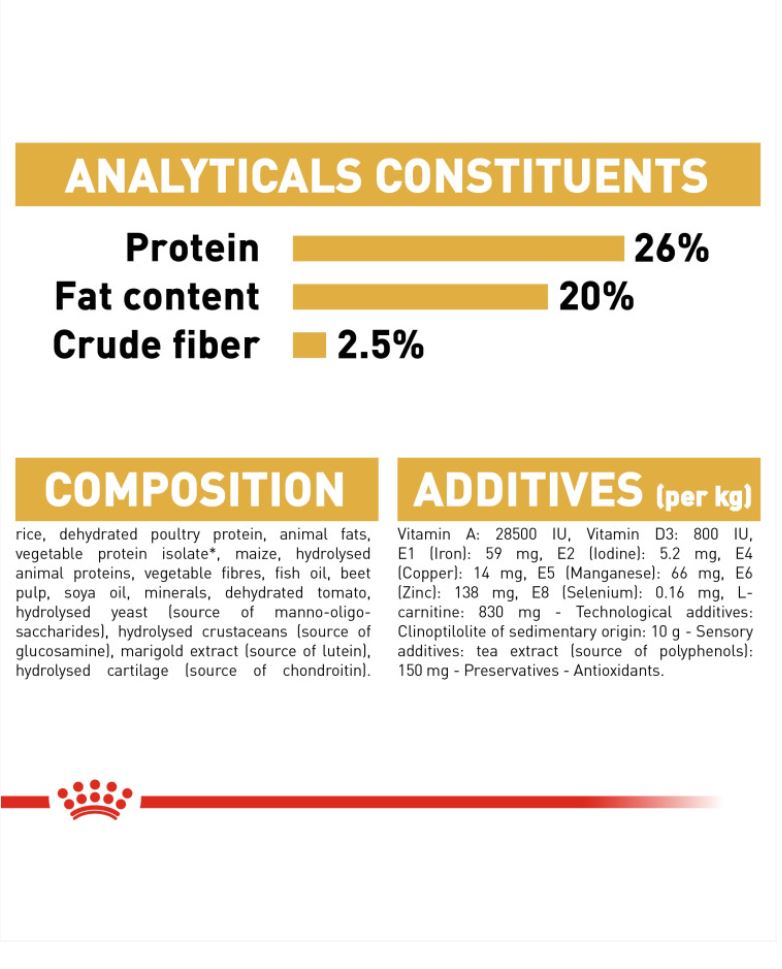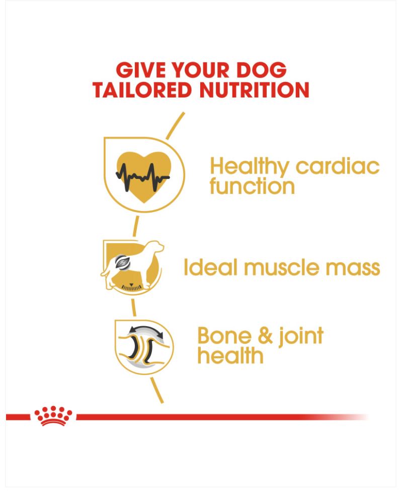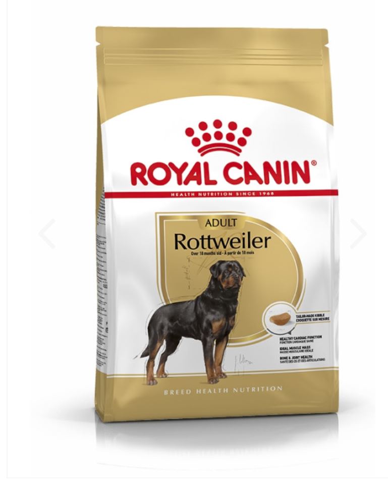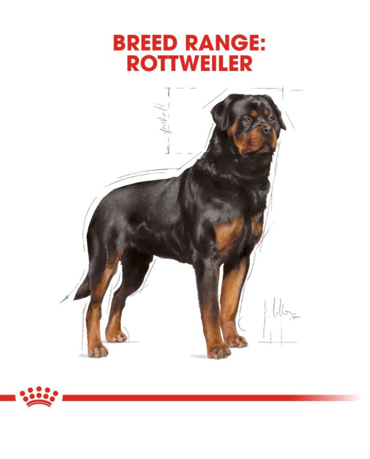 Suitable for Rottweilers aged 18 months old and over, ROYAL CANIN® Rottweiler Adult is specially formulated with all the nutritional needs of your adult dog in mind. ROYAL CANIN® Rottweiler Adult contains specific nutrients – such as taurine, EPA, and DHA – that help to support healthy cardiac function. ROYAL CANIN® Rottweiler Adult also contributes to the maintenance of optimal muscle mass and an ideal bodyweight, thanks to an adapted protein content and the inclusion of L-Carnitine. This diet – rationed appropriately to regulate proper food intake – should be fed in conjunction with an effective exercise routine. Whether working or just on a walk with its owner, the Rottweiler is always active and enthusiastic, which means it requires nutrients that support the health of its joints and bones. This is the reason ROYAL CANIN® Rottweiler Adult has been enriched with EPA and DHA – these omega-3 fatty acids help to support your dog’s healthy bones and joints. What’s more, the exclusive kibble in ROYAL CANIN® Rottweiler Adult is specially designed to make it easier for your dog to pick up, it also encourages it to chew more thoroughly to help increase the feeling of fullness and maintain an ideal weight.