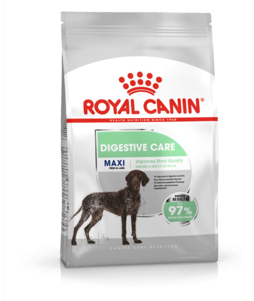 ROYAL CANIN Digestive Care Maxi is specially crafted for dogs prone to digestive sensitivity. Because larger dogs like yours are more prone to fermentation in the gut, soft stools can often be a problem.