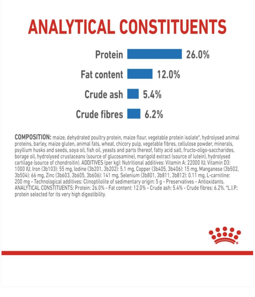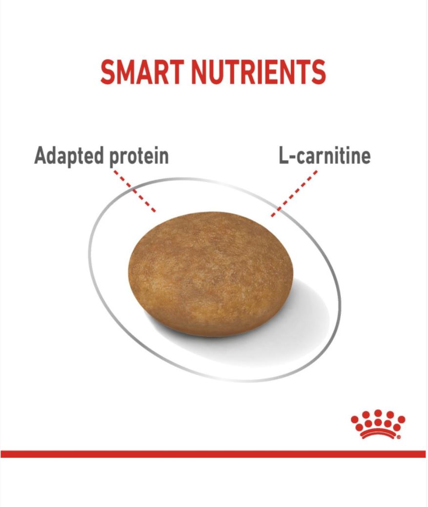 Adapted protein content to help maintain muscle mass for healthy weight maintenance. Enrisched with L-carnitine.