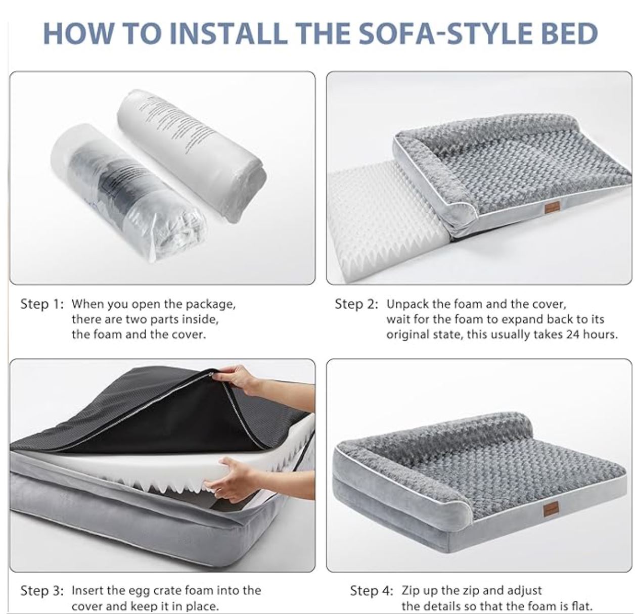 - EASY TO CLEAN&NON-SLIP: The sofa dog bed comes with a removable and washable dog pillow cover to ensure that the big dog bed can be easily cleaned. The washable dog bed has a durable zipper that allows for easy removal and reattachment. The non-slip rubber particles of the waterproof dog bed bottom hold it in place on the floor without sliding.