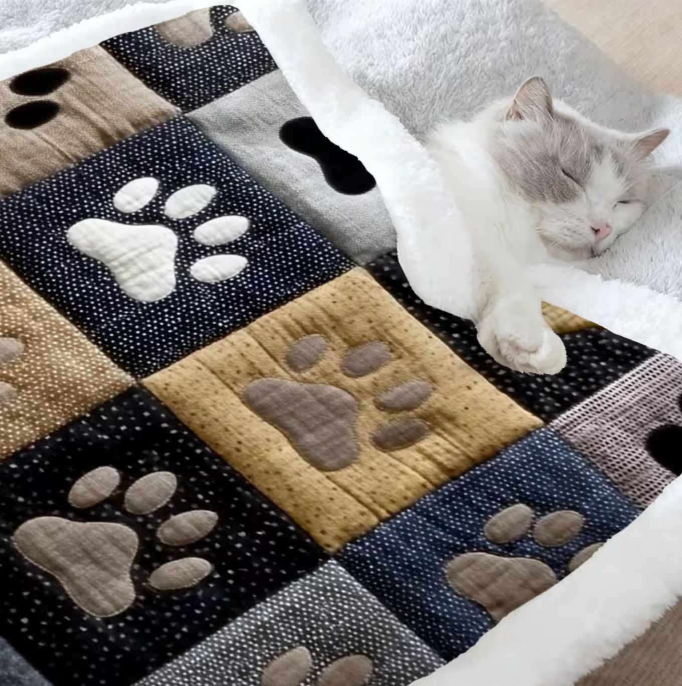 Multicolor Paw Peint and Bone Pattern Blanket 49cm x 80cm