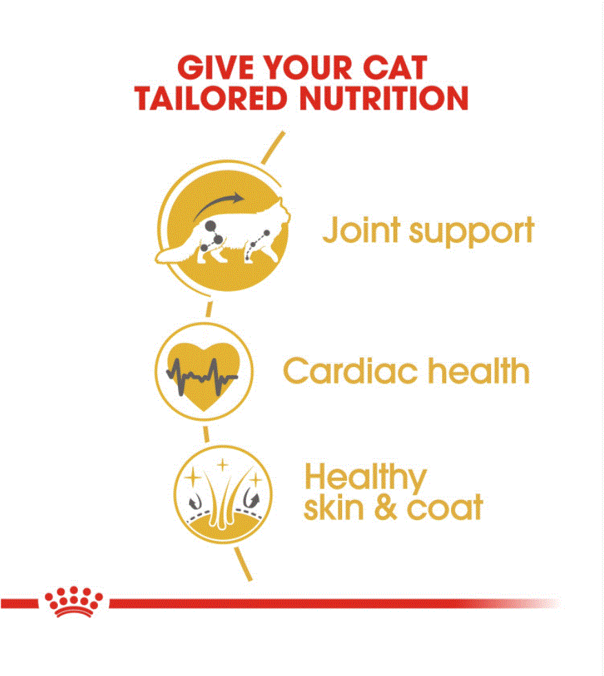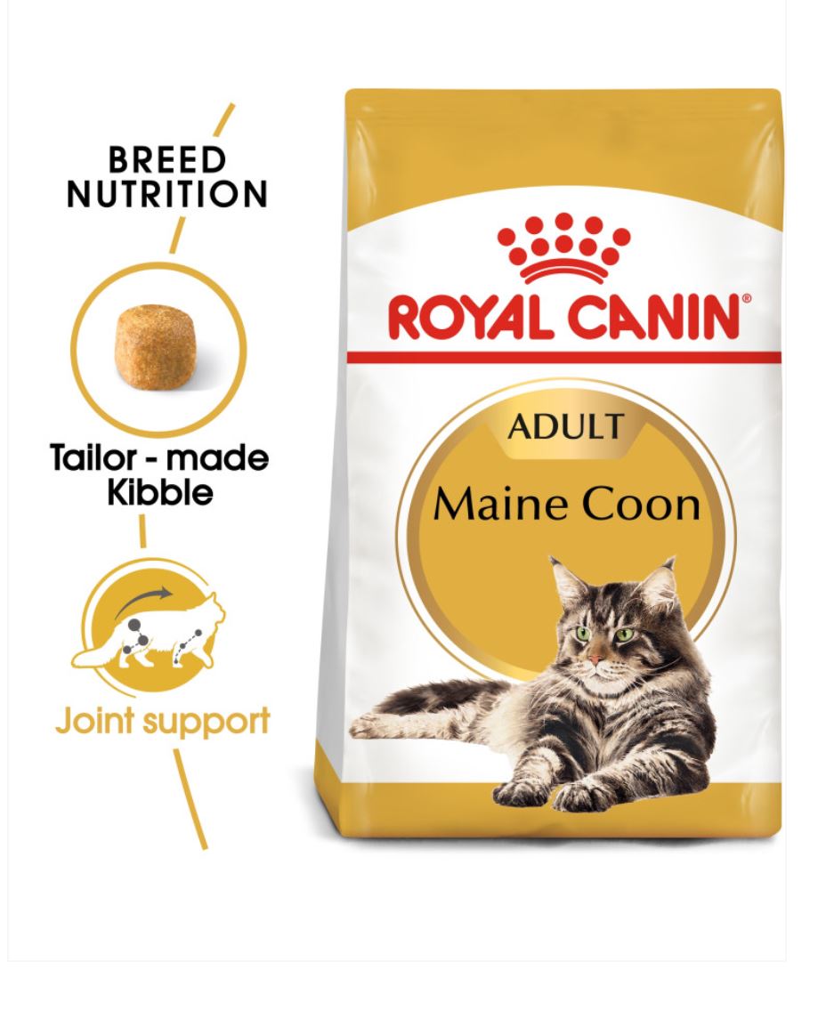 ROYAL CANIN® Maine Coon Adult food is specially formulated with the needs of this particular breed in mind. You can rest assured that catering to your Maine Coon’s nutritional requirements is just as important to us as it is to you. The Maine Coon is the largest domesticated cat in the world, and its impressive stature is combined with a truly sweet nature. Its solid bone structure and muscular body can make it three times heavier than the average cat. Due to its large size and bone structure, particular attention must be given to ensuring the general health and condition of its joints. ROYAL CANIN® Maine Coon Adult food is enriched with Taurine, DHA and EPA (omega-3 fatty acids) to help support and maintain healthy cardiac function. The Maine Coon has a large jaw which gives it a characteristic way of picking and chewing its food. That’s why the kibble in ROYAL CANIN® Maine Coon Adult food is specially designed to be king sized and cube-shaped – prolonging the action of chewing which helps to support good oral hygiene. To cater to each cat’s individual preferences, ROYAL CANIN® Maine Coon Adult is also available as wet food in delicious gravy. If you’re considering mixed feeding, simply follow our feeding guidelines to ensure your cat gets an accurate amount of both wet and dry food for optimal benefit.