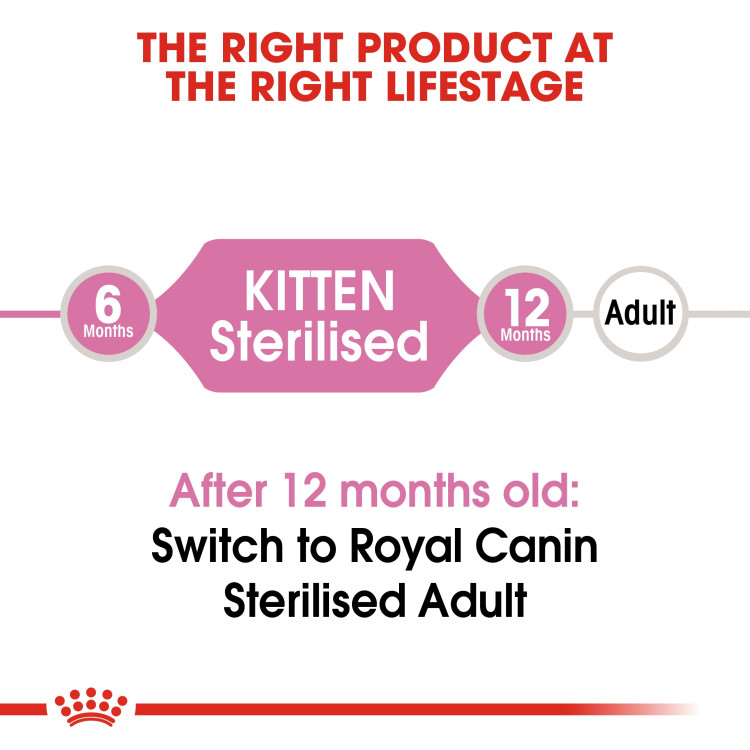 As your kitten begins to grow and explore its surroundings with a new-found sense of curiosity, this period of new discoveries at 6 to 12 months old means that your kitten’s immune system will need extra support – particularly if it has been sterilised. ROYAL CANIN® Kitten Sterilised is designed with your kitten’s needs in mind at this crucial time in its development. With nutrients included to help support your kitten’s natural defences after being spayed or neutered, you can help maintain its health throughout its second age life stage. ROYAL CANIN® Kitten Sterilised food contains a special combination of proteins, vitamins, minerals, and a patented complex of antioxidants – all designed to keep your kitten healthy as it grows into a strong adult cat. To cater to each cat’s individual preferences, ROYAL CANIN® Kitten Sterilised is also available as wet food in either a delicious gravy or succulent jelly. If you’re considering mixed feeding, simply follow our feeding guidelines to ensure your cat gets an accurate amount of both wet and dry food for optimal benefit.