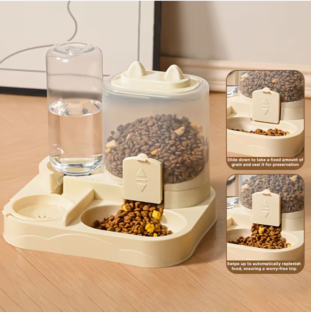 Integrated Automatic Cat Feeder And Water Dispenser Set ( Grey )